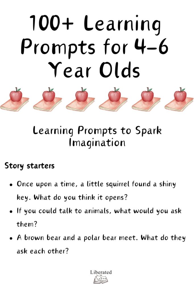 Whether you’re planning on home educating your child and feel ready to start incorporating some learning into your daily lives or are just looking for some fun and engaging ideas to keep your 4-6 year old happy and occupied, these 100+ learning prompts are sure to do the trick!