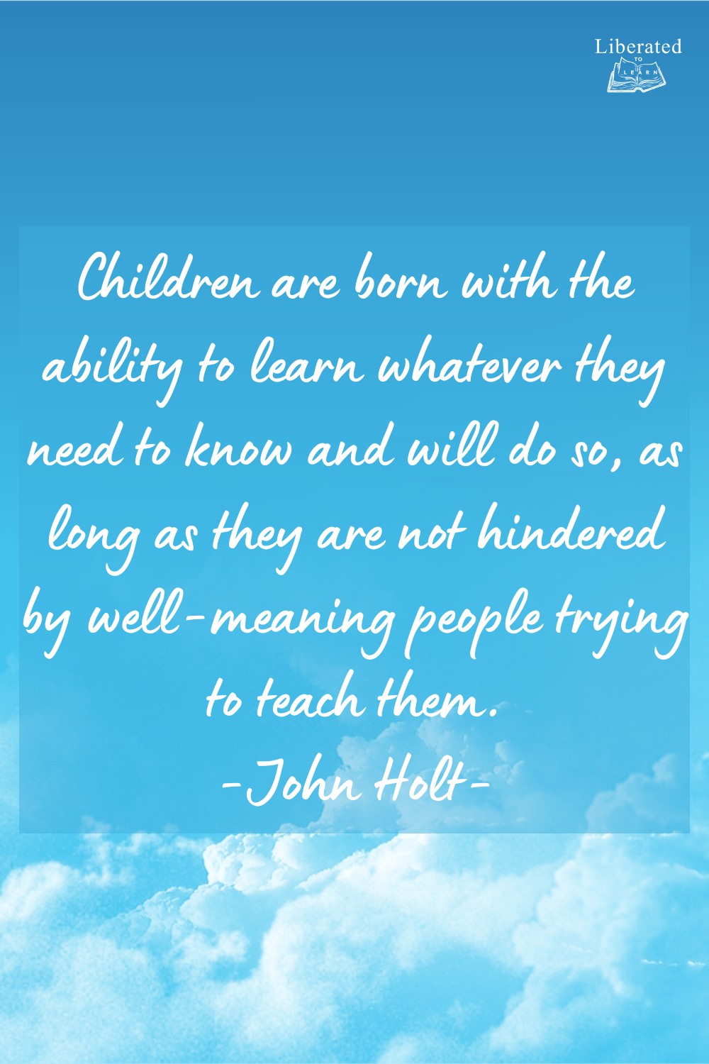 “Children are born with the ability to learn whatever they need to know and will do so, as long as they are not hindered by well-meaning people trying to teach them” —John Holt
