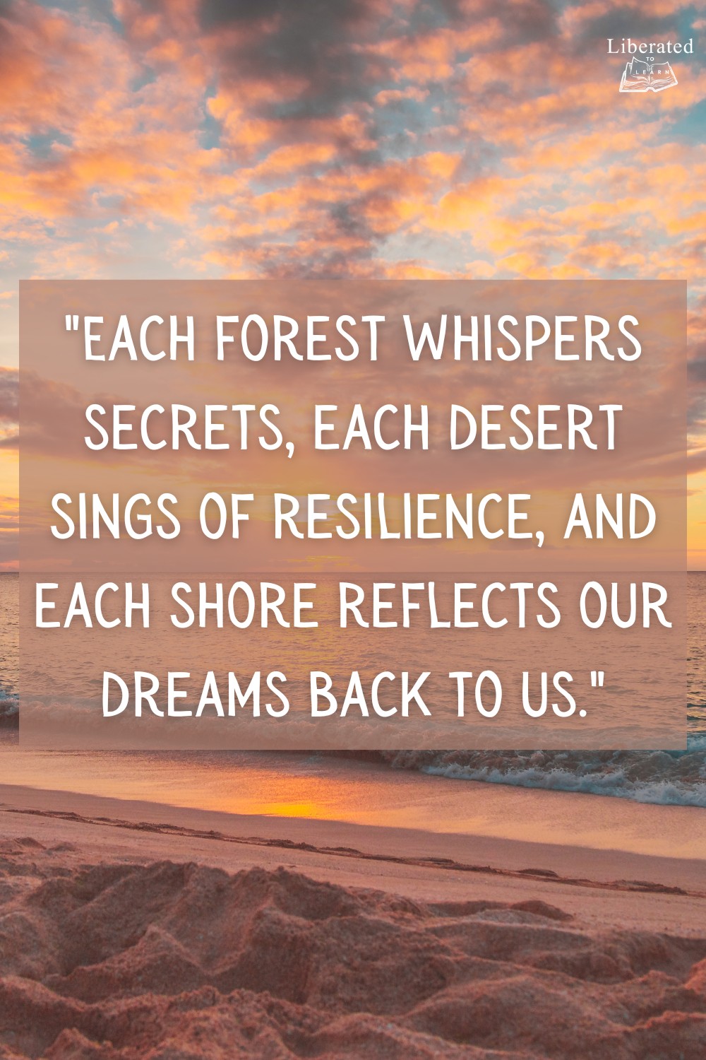 “Each forest whispers secrets, each desert sings of resilience, and each shore reflects our dreams back to us.”