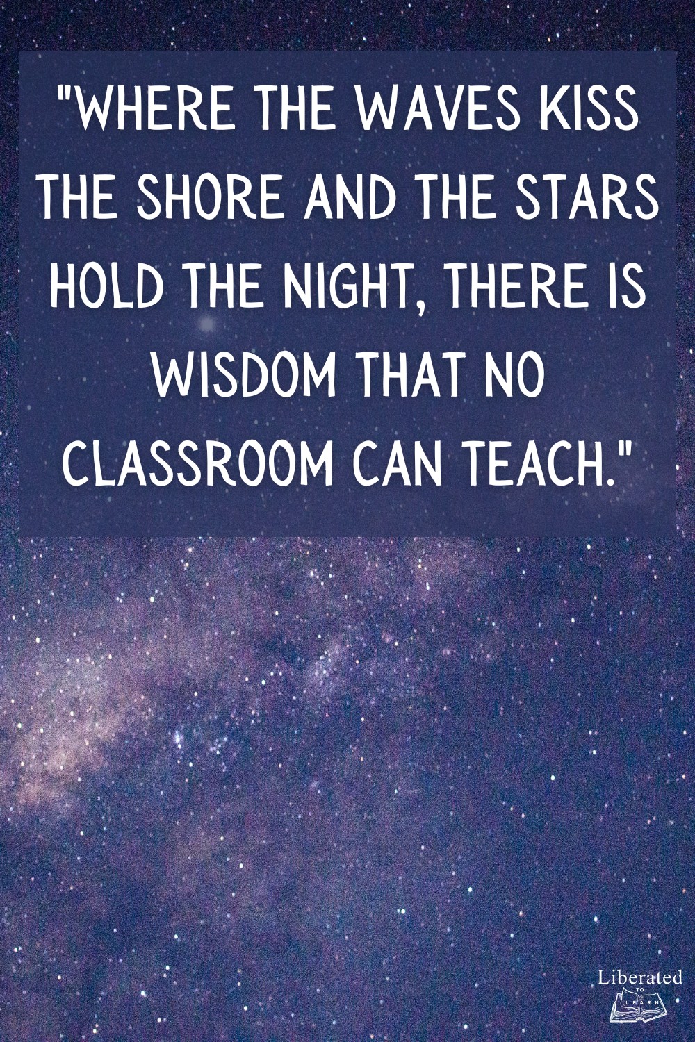 “Where the waves kiss the shore and the stars hold the night, there is wisdom that no classroom can teach.”