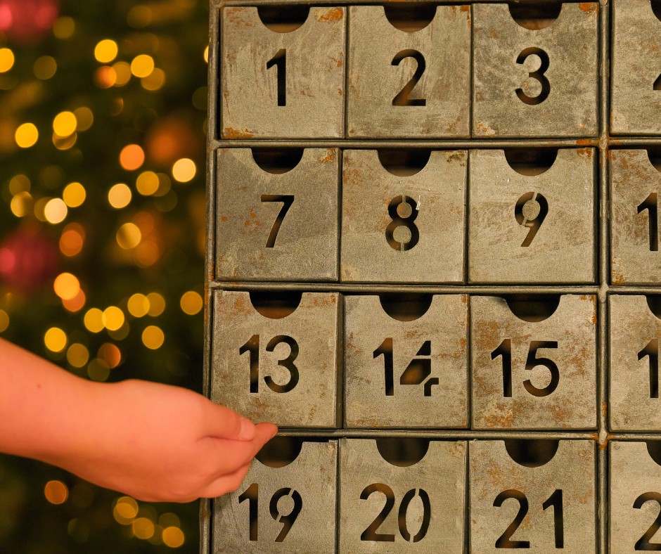Reusable wooden calendar: Buy or craft a wooden advent calendar with small drawers or compartments.