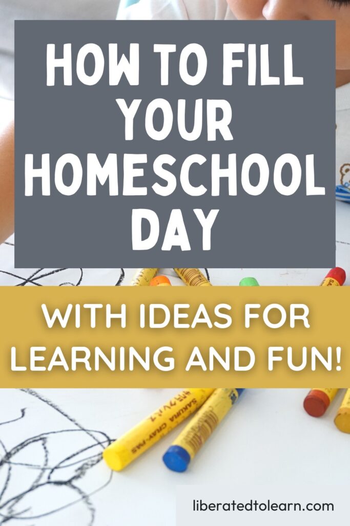 If you’re wondering how to fill your homeschool day and keep your kids busy, here are some ideas for learning as well as enjoyable activities that you can do at home and outside.