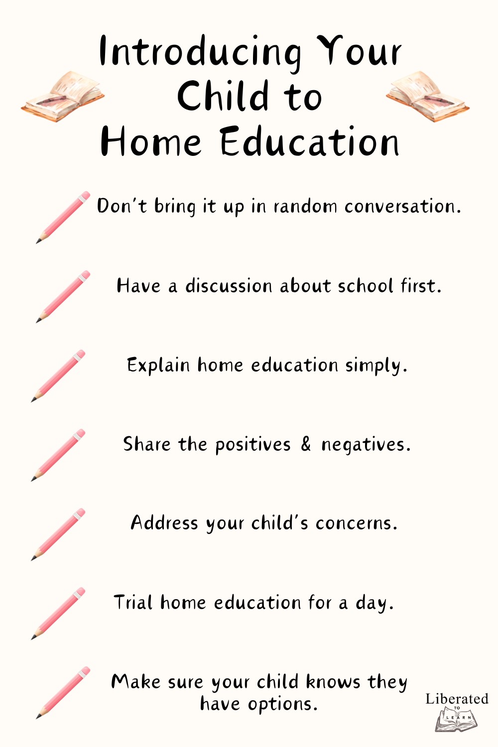 The most important thing about introducing your child to Home Education is making sure that they know they have options. The last thing you want is your child feeling like they have no other choice or that they’re forced to do one thing or the other.